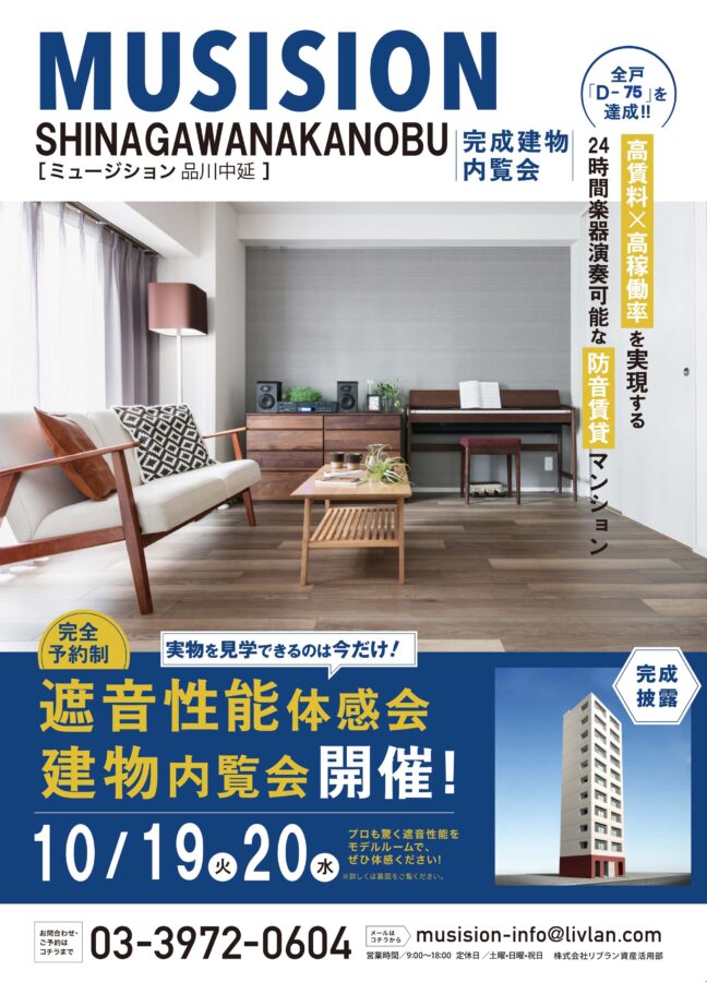 大変お待たせしました、ミュージション品川中延にて遮音性能体感会・建物内覧会合わせて開催いたします。
