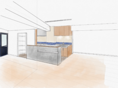 サービスルーム(窓無しのお部屋)には室内窓を設置し、風が流れるようにリノベーションしました。検討段階では設計士の田中が描いたスケッチを元にイメージを膨らませてデザインを決めています。