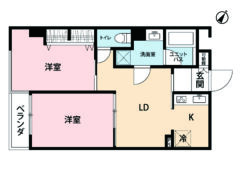 ブラック系統のアクセントクロスが室内をぐっと引き締める2LDKのお部屋。寝室と書斎、リビングダイニングとゾーン分けして使えます。ダイニングと東側の洋室は引き戸を大きく開けると一続きの空間としても活用できます。室内はわざとカーテンなどで暗くして、プロジェクターを壁に投影してプライベートシアタールームにしても楽しそうです。