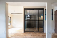 リビングは「大正ロマン」をテーマにした空間で、インナーサッシはオーダーで注文したガラス戸を採用。季節や時間帯によっても、お部屋の雰囲気がどんどん変わっていきます。