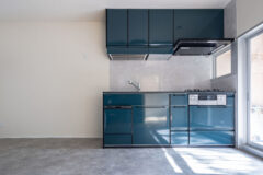 ご入居後は青い壁側にピアノと、棚の前にはカウンターテーブルを置いて、音楽とお酒を愉しむ空間になる予定とのこと。