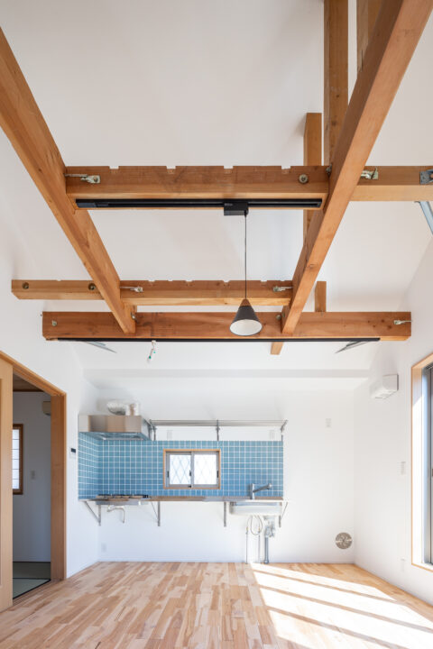 キッチンと寝室に通気窓を設置することで、寝室や隣接するクローゼットにも風が流れ、湿気を防ぐ。ダイニングキッチンの天井にはライトレールを設置し、どこにテーブルを置いても照明の位置を調整できるようにした。