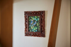 バリ島で見つけて持ち帰った鳥の絵は、「家ができたら玄関に飾ろう」とふたりで決めていたそう。