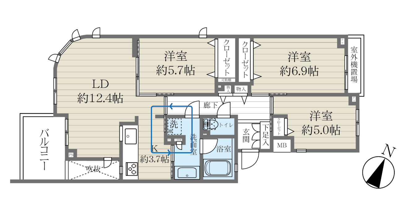 ①家事動線と回遊性: 回遊性のある間取りによって、生活動線がスムーズになり、 家事の負担が軽減されます。