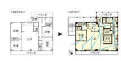 まず、既存の振り分けだった4LDKを、スケルトンリフォームで大空間LDKに。
