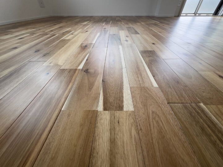 無垢材のフローリング。部屋が明るく、暖かい印象になります。