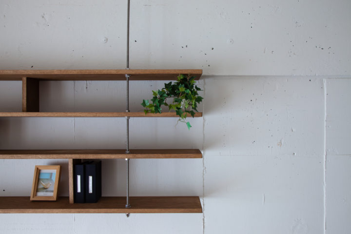 ウォールシェルフは設置する壁の色やインテリアに合わせて色味を変更。それぞれのカラーが空間に自然と溶け込み、落ち着きのあるアクセントとして機能。