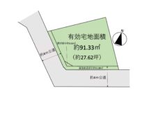| 土地面積 | 公簿95.07㎡ 有効宅地面積91.33㎡(27.62坪)㎡ |