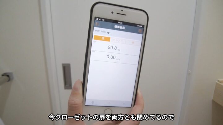 「ウインドスルークローゼットのメリットはわかったけれど、本当に風が通るようになるの?」と疑問に思う方もいらっしゃいますよね。そこで、ウインドスルークローゼットを作ったリノベーション物件で、風速計を使って測ってみました!
