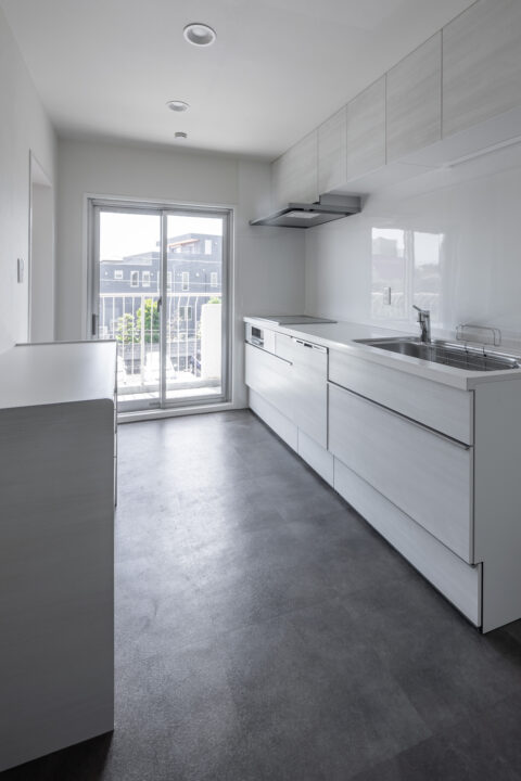 同じく、一体型のタイプです。写真左手にダイニングスペースがあり、調理しながら食事を楽しめそうです。右手に廊下があり、水回りにつながっているので、洗濯などの導線も良さそうです。
