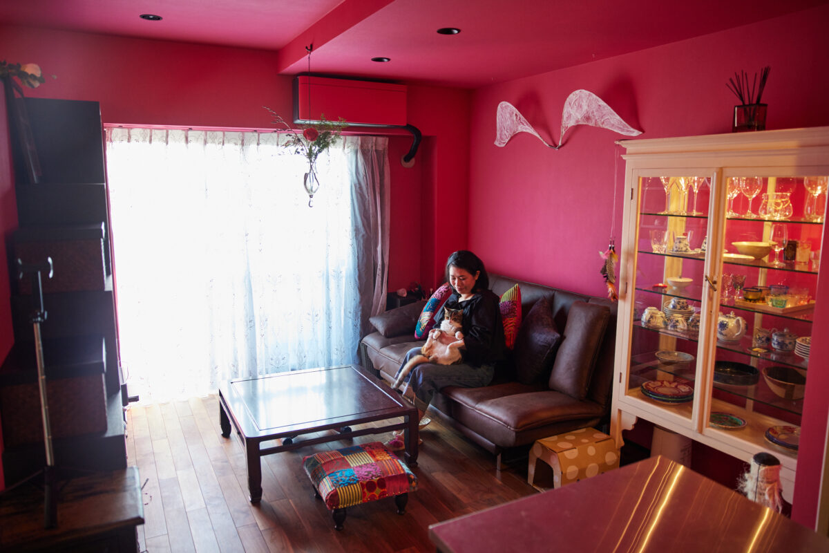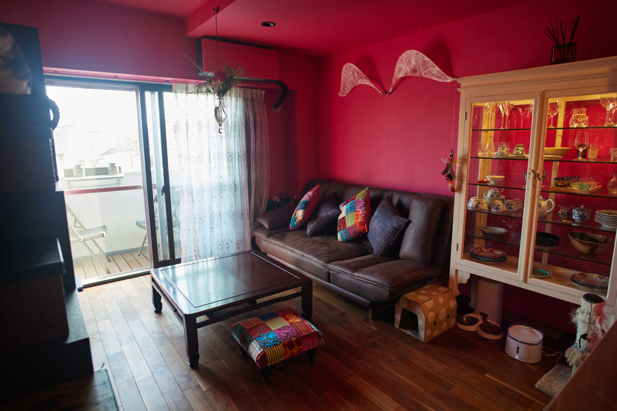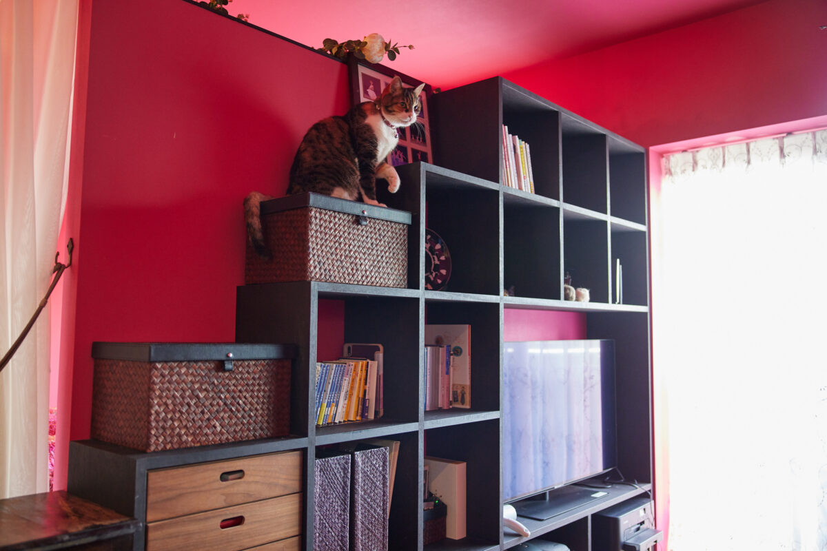 お気に入りの作品や、調度品、ゲストと過ごす空間、そして大切な猫ちゃんたちとの暮らし。たくさんの「叶えたい」をてまひま不動産と二人三脚で実現させたTさん。光を受けていつも明るいオペラピンクの空間は、こだわりに満ちていながらも、毎日を気持ち良く過ごせる機能性に裏付けられたものとなりました。