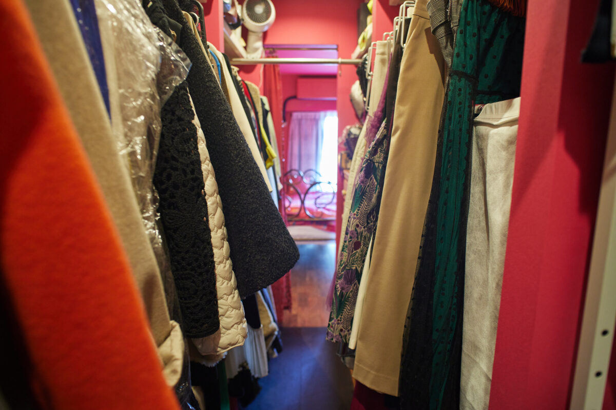 寝室とゲストルームを結ぶウォークスルークローゼット。Tさんのお気に入りの一着一着にもしっかりと新鮮な空気が通る。