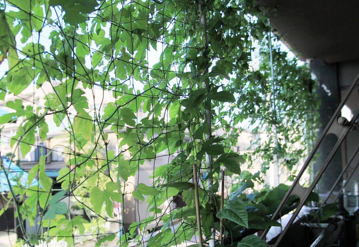 見た目の良さだけでなく、葉っぱの“蒸散作用”(植物が葉の表面から水蒸気を放出する現象)で、夏も涼しく過ごせます。また、ゴーヤやヘチマを育てれば、実った果実は美味しくいただけます。