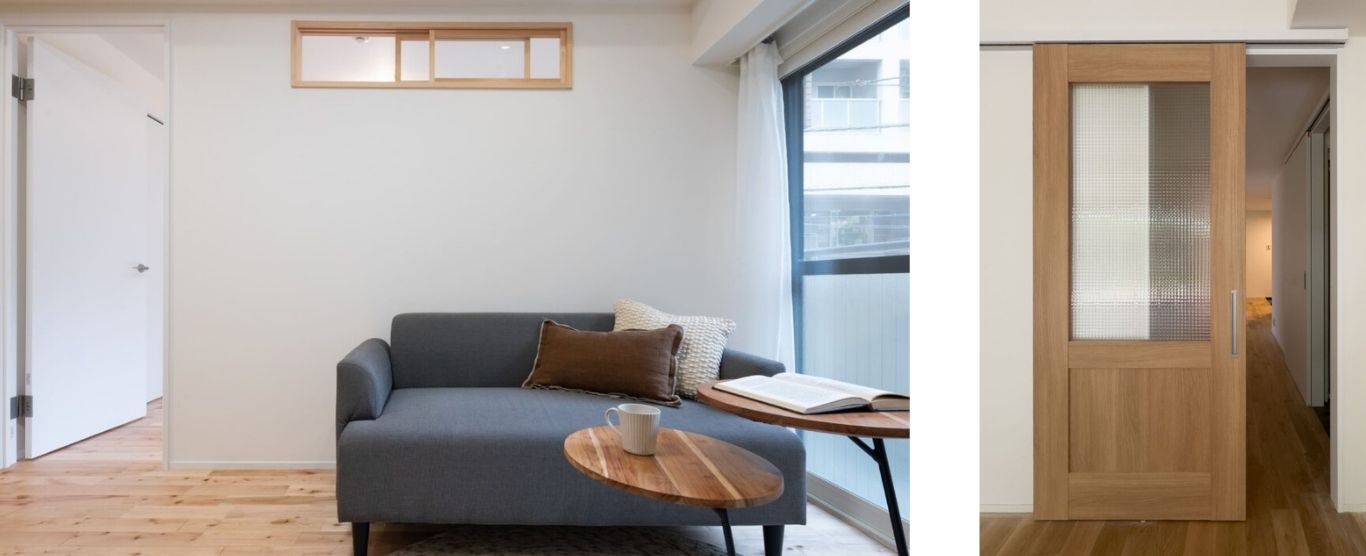 ① 「引き戸」と「室内窓」で光の通り道を作る