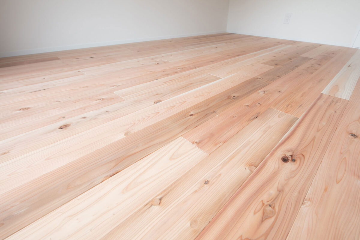てまひま不動産が標準仕様として採用しているのが、厚みのある杉の無垢床です。