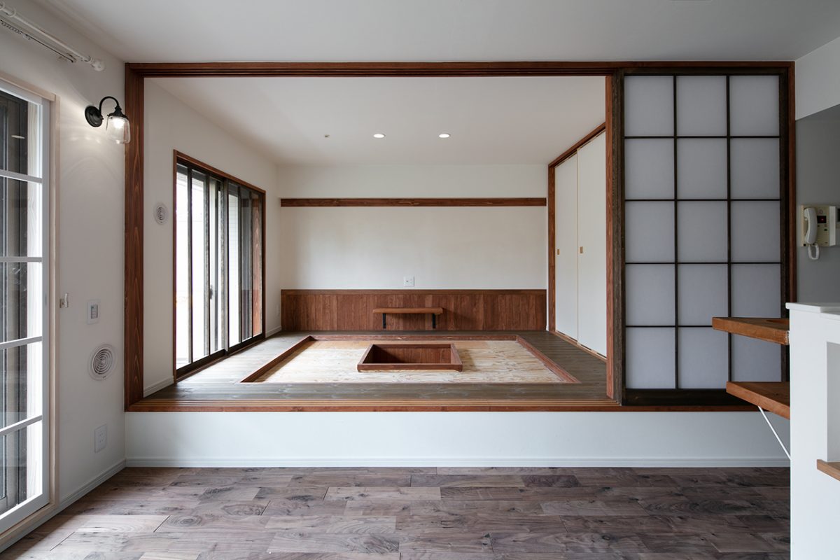 この和室は中心が囲炉裏(家電を使用)になっていて周りにタタミが敷かれます。料理を囲みながら豊かな時間が流れていく、そんなすてきな空間です。